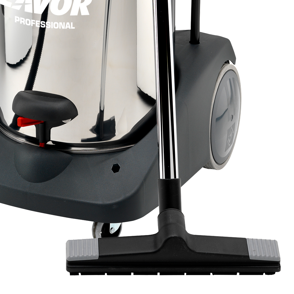 L’ampia e solida struttura portante del fusto dell’aspirapolvere consente il montaggio di robuste ruote di grandi dimensioni che facilitano gli spostamenti su qualsiasi tipo di superficie, anche su terreni sconnesi.