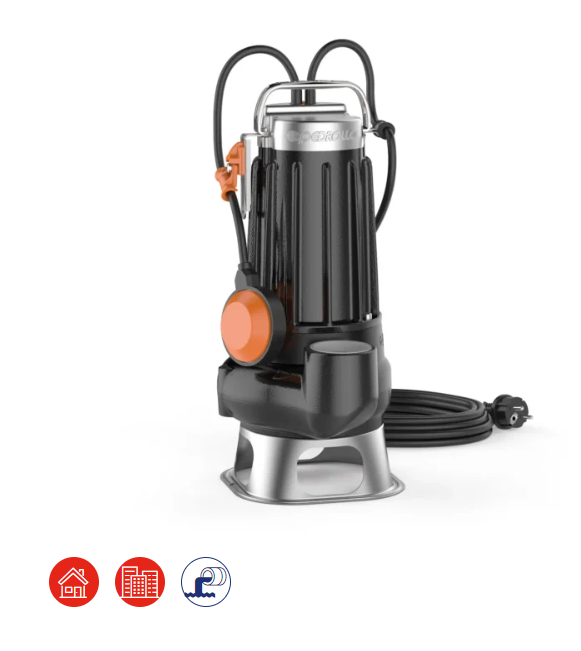 Le pompe della serie VXC sono consigliate quando sono richieste elettropompe molto robuste e di grande affidabilità, con girante di tipo VORTEX. Costruite in ghisa di notevole spessore, eccezionale robustezza e resistenza all’abrasione, sono particolarmente indicate nelle installazioni a servizio continuo. Sono consigliate per il drenaggio di acque cariche con corpi solidi in sospensione, acque luride, reflue e miste a fango.