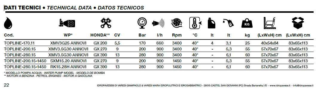 IDROPULITRICE PROFESSIONALE AD ACQUA FREDDA A SCOPPIO IDROPAVESE TOP LINE 170