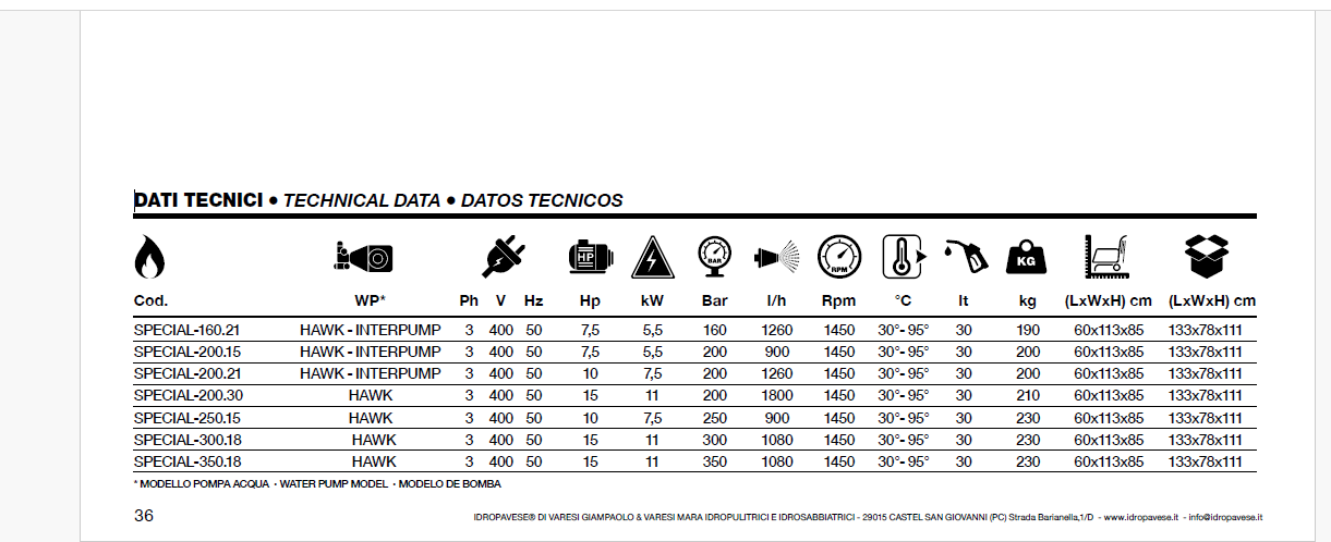 IDROPULITRICE PROFESSIONALE AD ACQUA CALDA IDROPAVESE SPECIAL E SPECIAL INOX