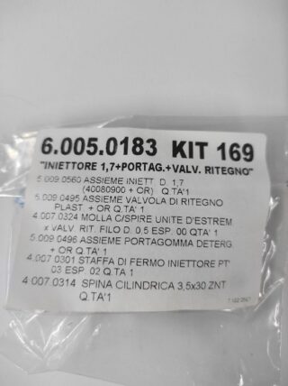 KIT 169 LW INIETTORE 1,7+POR TAG.+VALV. RITEGNO PT03 LAVOR COD. 10001-08796